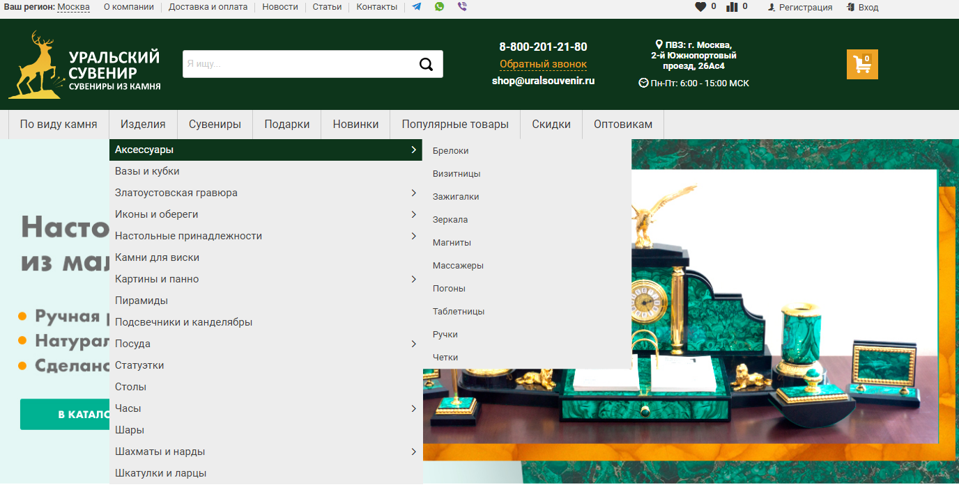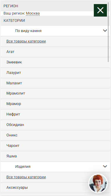 Предположим, что Вы еще не знаете, какой конкретно товар Вам необходим, но Вы знаете, как и где он будет использоваться или из какого камня он должен быть. Специально для этого мы разделили товары по категориям на нашем сайте. Чтобы в них попасть, необходимо навести курсор на одну из ссылок в верхней части главной страницы (так, как показано на картинке), в том случае, если Вы заказываете с компьютера: