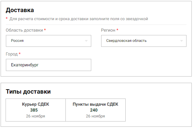 После заполнения блока "Покупатель" необходимо выбрать способ получения заказа и способ оплаты заказа (более подробно о способах получения заказа можно прочитать на странице "Доставка и оплата"):